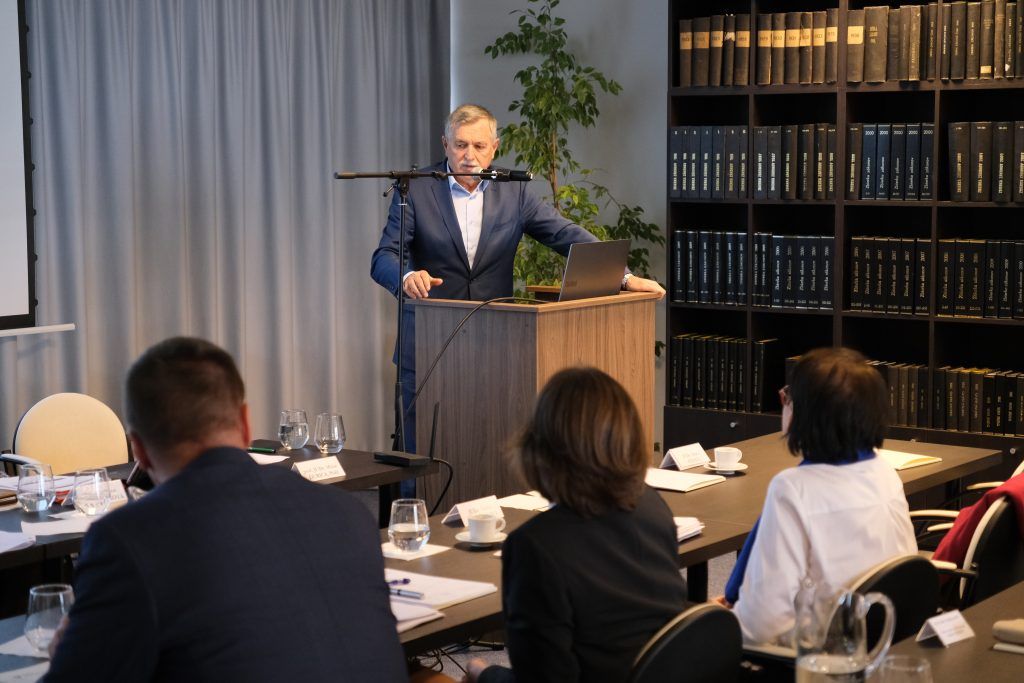 Emeritný sudca prof. JUDr. Milan Ďurica, PhD. na sympóziu „Konkurz a reštrukturalizácia v civilnom sporovom a súdnom správnom konaní“. Foto © Najvyšší správny súd Slovenskej republiky.